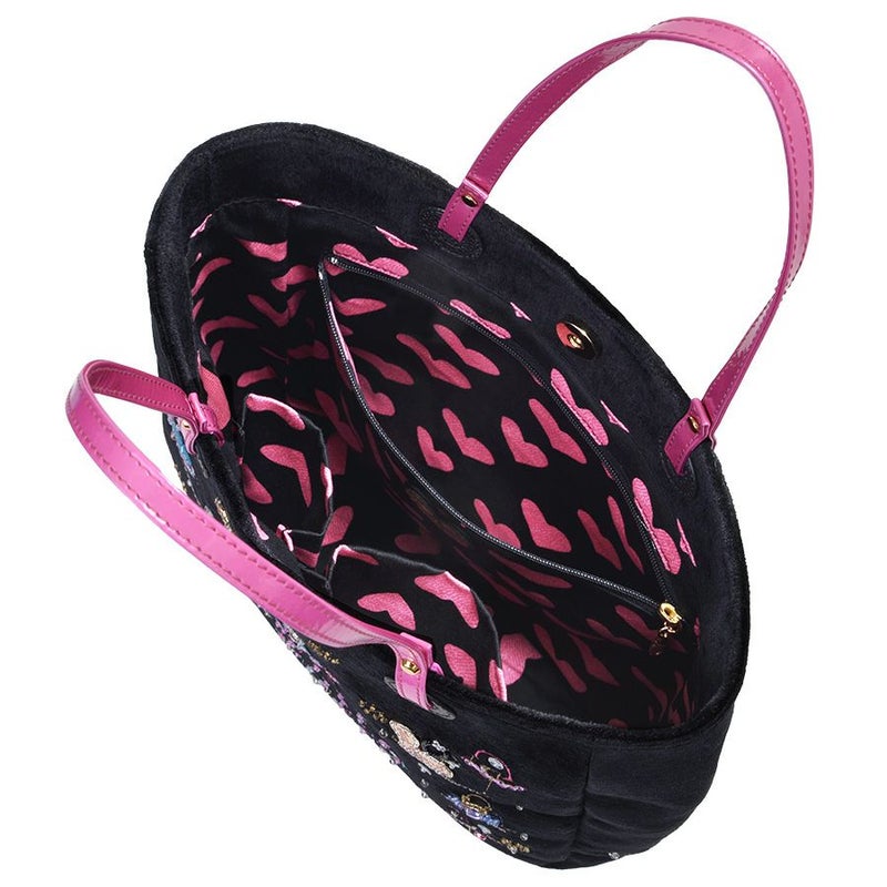 バッグは、ハンドルの付け根にスワロフスキー・クリスタルが煌めき、ボディにエッフェル塔とフランス国旗を描いた遊び心あふれるデザイン。傘は、ハンドルについたピンクのリボンの中心にクリスタルガラスがキラリと輝く凝った仕様です。