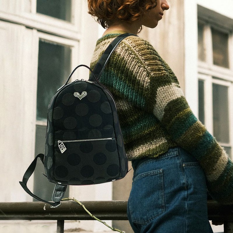 モノトーンの中に煌めきを添えるラインストーンで縁取ったシルバーのJust Heartプレートがアクセント。