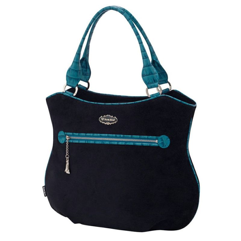 ハンドルは刺繍とベストマッチな高級感のあるブルーのクロコ型押し牛革を使用しています。