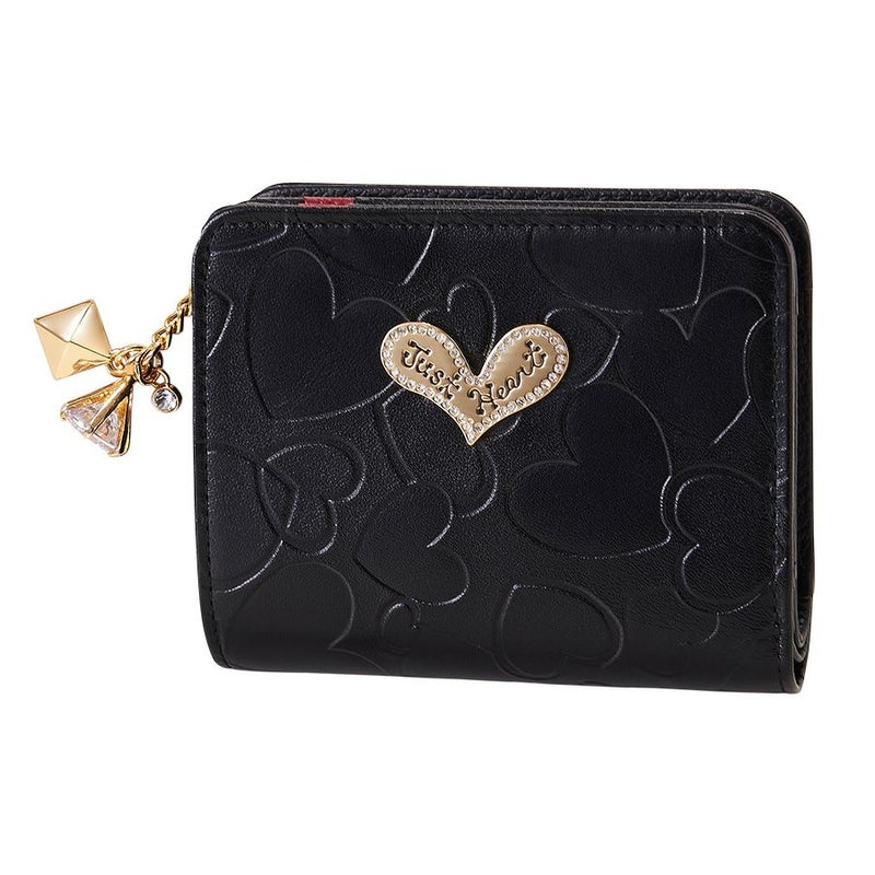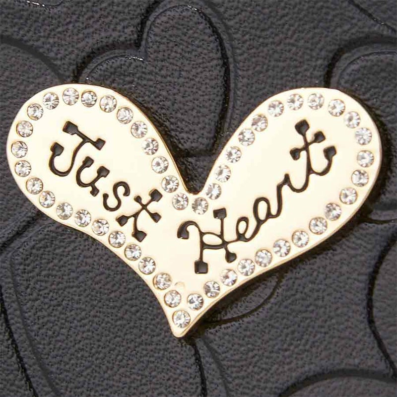 ブラックの型押しメタリックレザーは存在感抜群!しっとりと手に馴染む、シンメトリーのハートを型押ししたこのレザー(牛革)は日本製で、洗練された繊細な美しい光沢が魅力です。