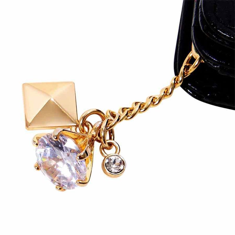 引手は大ぶりのジルコニアと小粒のクリスタルガラスがキラキラ揺れるチェーンタイプ。長めのチェーンが持ちやすく、開閉しやすくなっています。ブラックレザー×ゴールドのコンビネーションで、さらに高級感を演出しています。