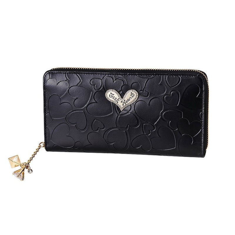 ブラックの型押しメタリックレザーは存在感抜群!しっとりと手に馴染む、シンメトリーのハートを型押ししたこのレザー(牛革)は日本製で、洗練された繊細な美しい光沢が魅力です。