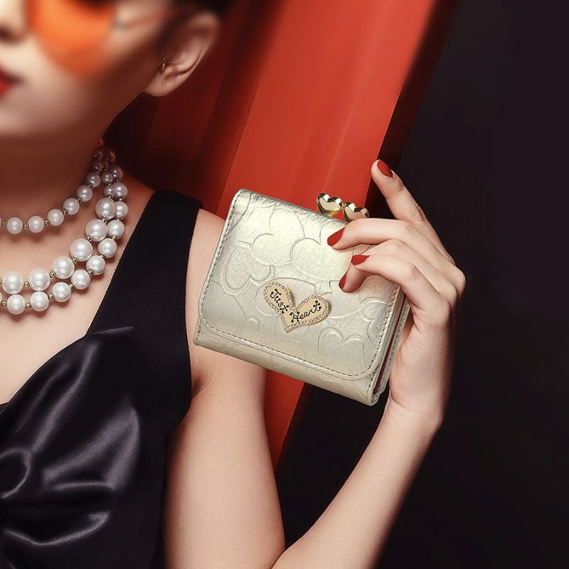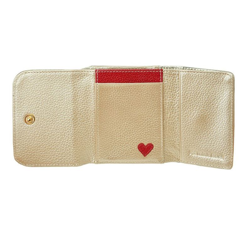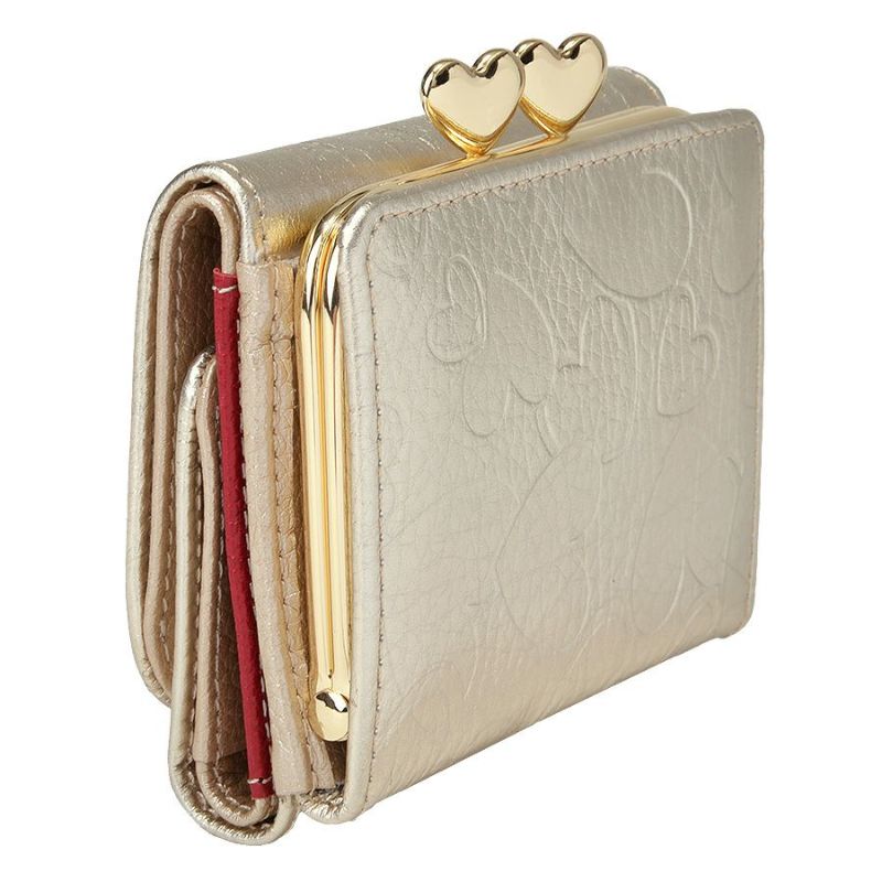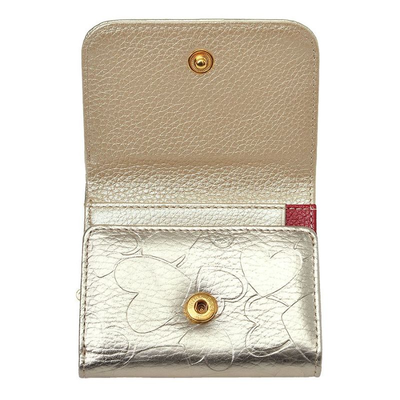 上品なシャンパンゴールドの型押しメタリックレザーは存在感抜群!しっとりと手に馴染む、シンメトリーのハートを型押ししたこのレザー(牛革)は日本製で、洗練された繊細な美しい光沢が魅力です。