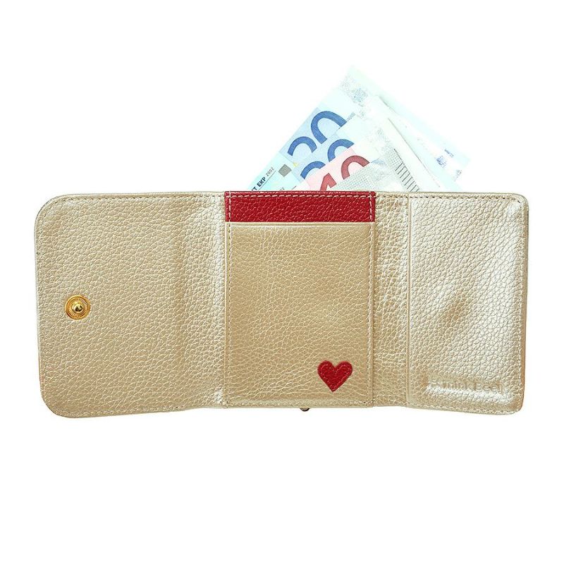 小さいながら、コインだけでなくお札やカードも収納できる優れもの。カードは3枚収納可能。