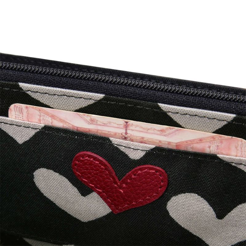 ファスナーを開けると、中もモノトーンのハート柄♡