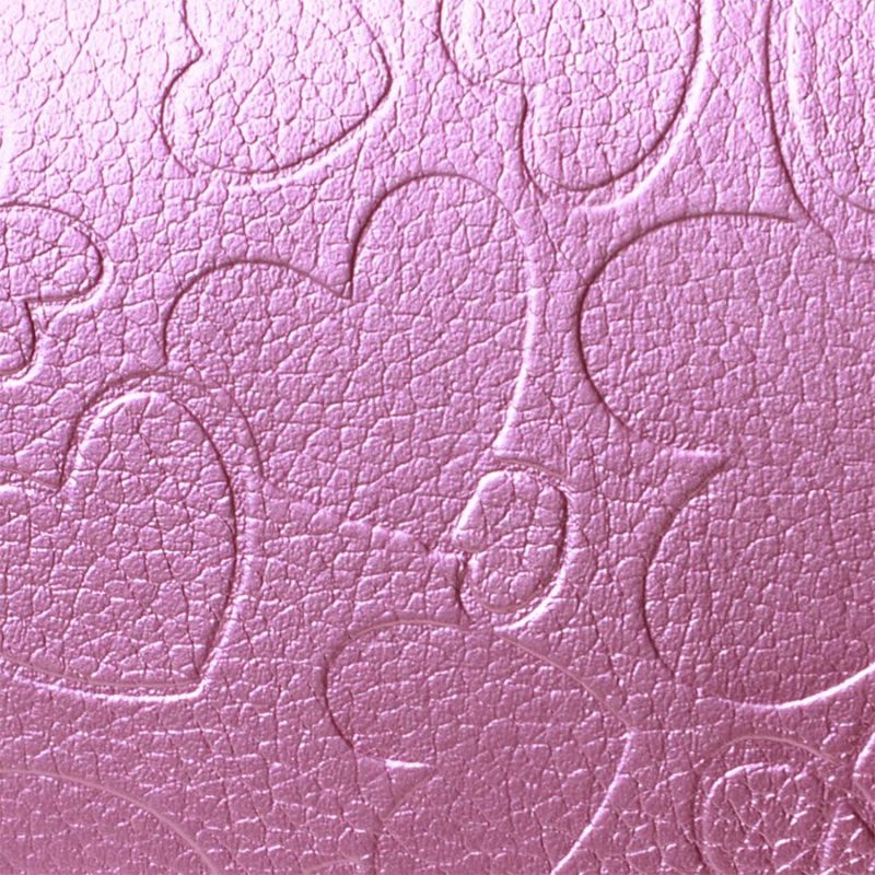 青みがかった甘すぎないピンクの型押しメタリックレザーはクールな印象で存在感抜群!しっとりと手に馴染む、シンメトリーのハートを型押ししたこのレザー(牛革)は日本製で、洗練された繊細な美しい光沢が魅力です。