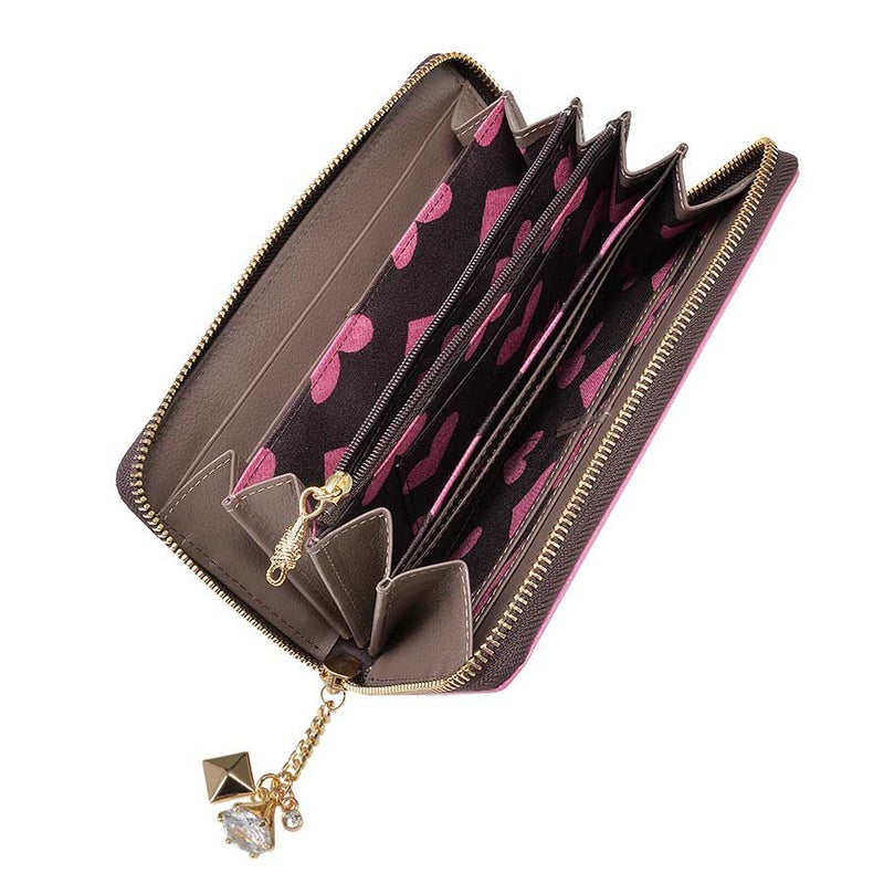 中央のファスナー式小銭入れを挟んで、札入れやカード入れをシンメトリーに配置。