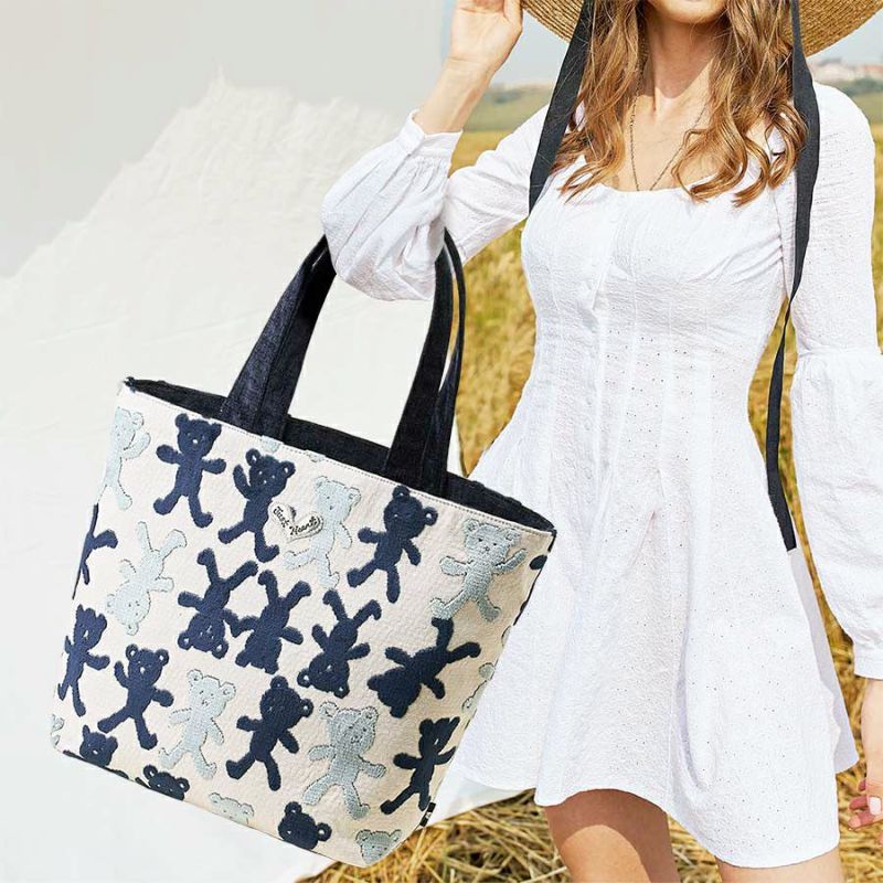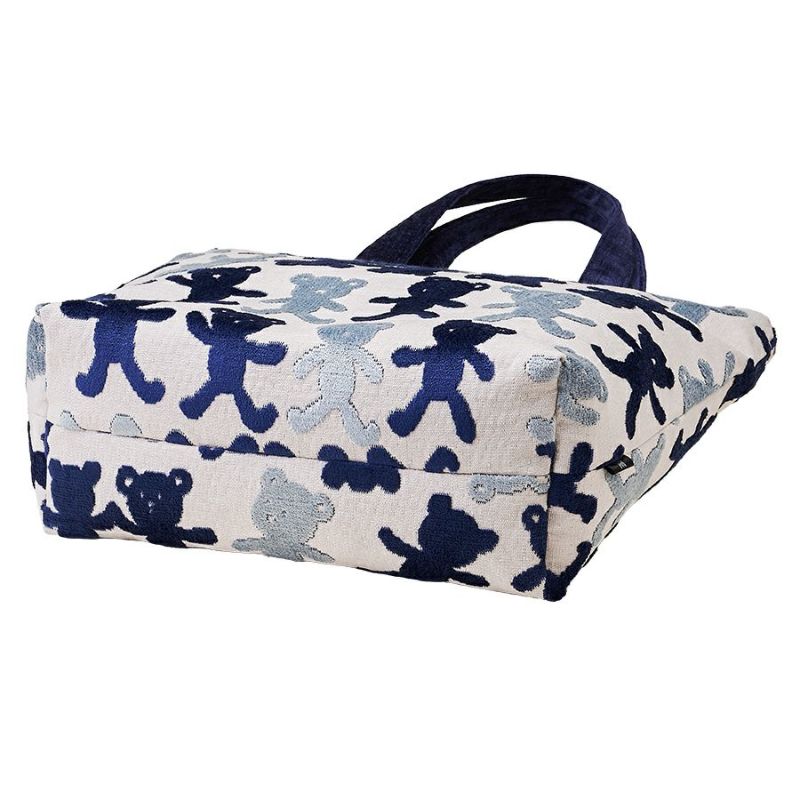 凸凹でクマちゃんを表現した表地は、パイルを凹凸に織り込んで柄を表現しているベルギー製の織物で、ふわふわとした手触りが特長です。