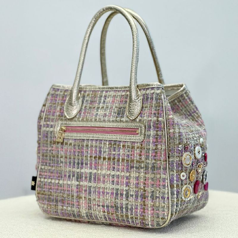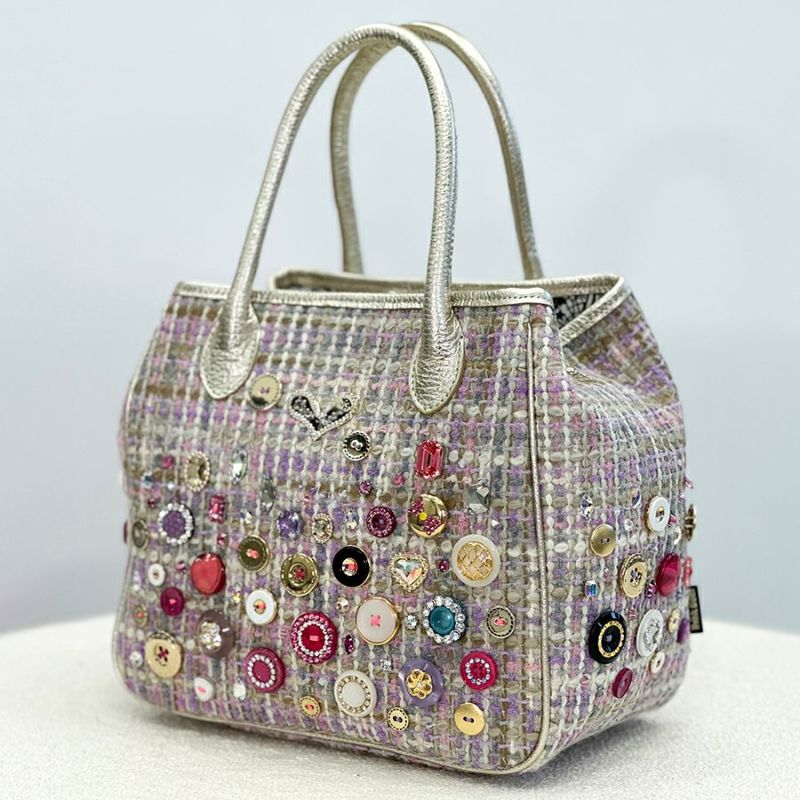 ラベンダー ライトピンク グレー キャメル ホワイトの糸に クリスタルや多色の石が散り、 柔らかく光を反射する。 触れるたび光が舞い、 夢の時間が日常にそっと溶け込む。 色彩のリズムが微かに揺れ、 心の奥で淡い煌めきが 波紋のように広がる。 光の余韻が静かに呼吸する