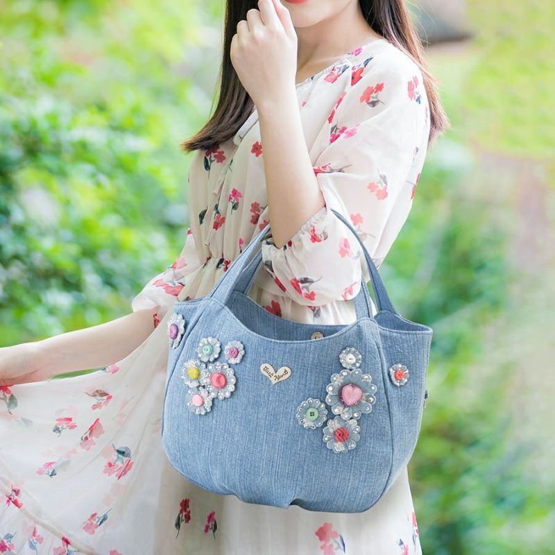 ハンドルには表地と共生地のデニムを使用して、軽やかな印象に仕上げました。