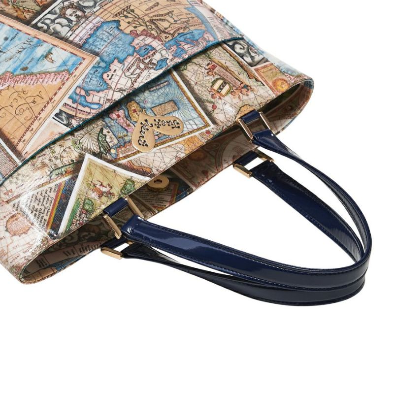 バロック調の天球儀や航海図が重なり合うように描かれたデザインで、アート性もあり、シックな雰囲気。