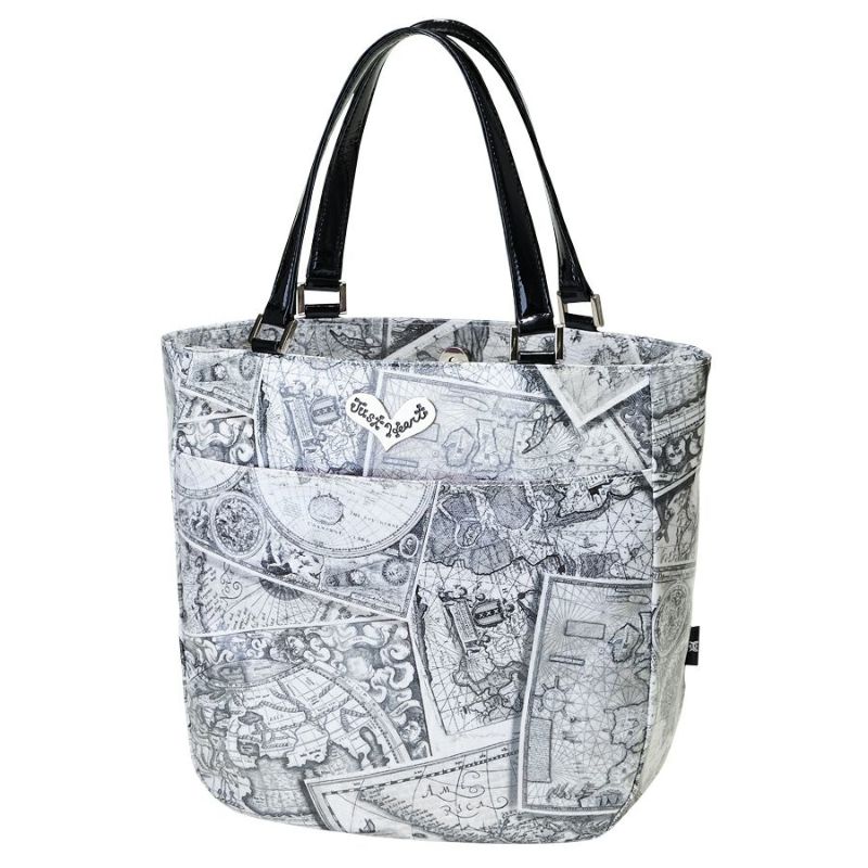 レトロな世界地図をプリントしたスペイン製生地を使用。