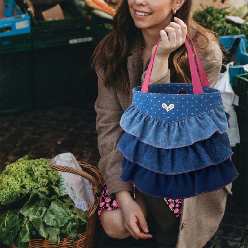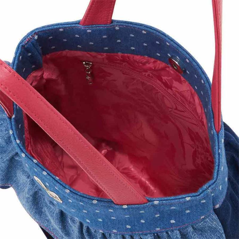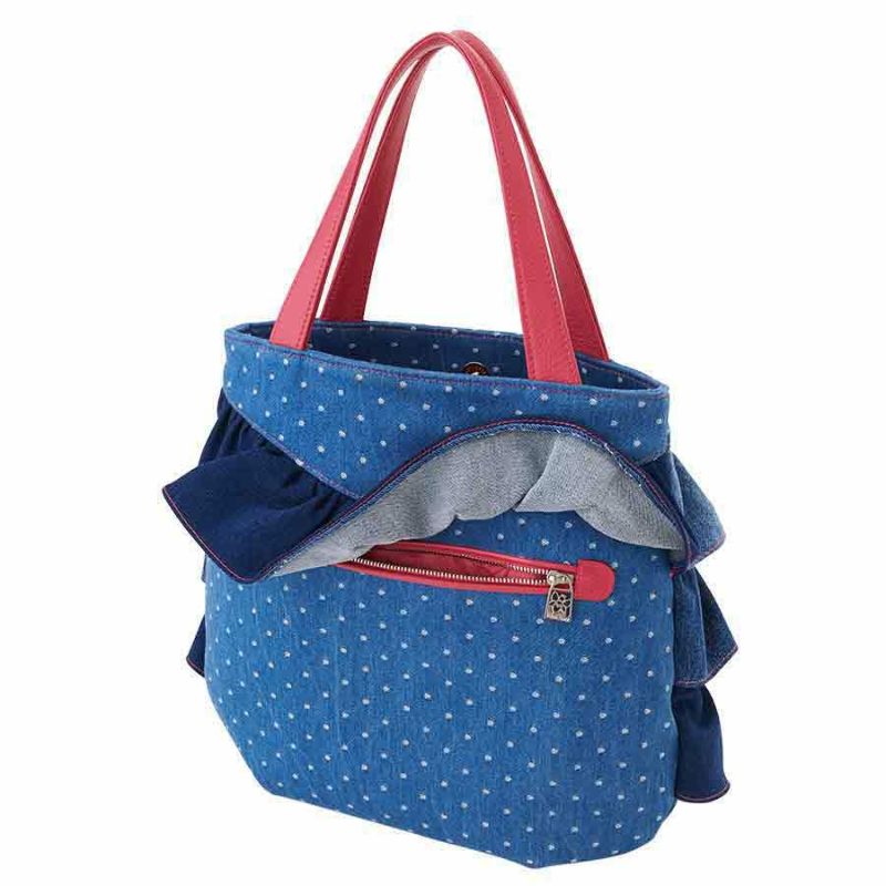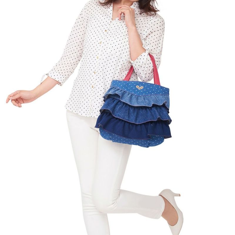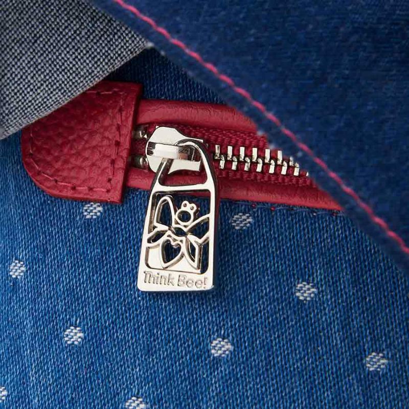 世界的に定評のある岡山デニムのブルーと牛革ハンドルのピンクの組み合わせが爽やかでキュート。