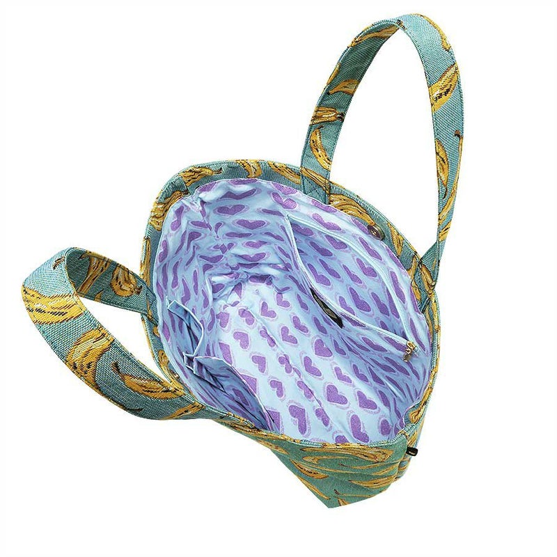 このポップな柄をいかして、あえて装飾は施さずシンプルなトートに仕上げました。