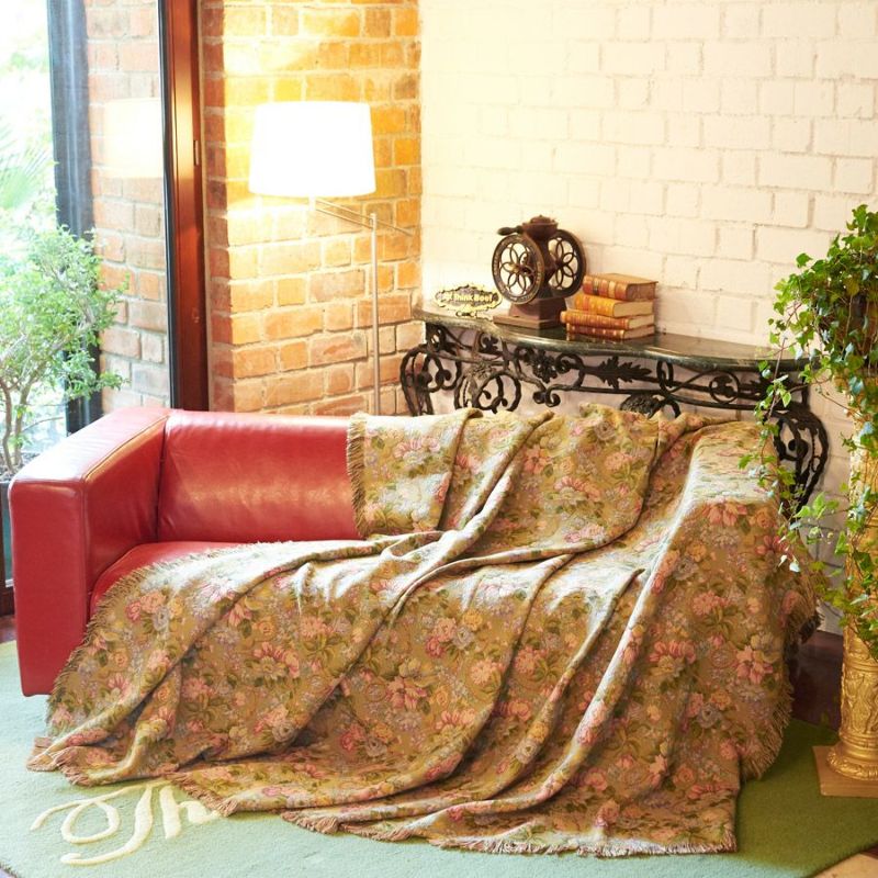 大きなサイズのマルチカバーにぴったりの大胆な構図のフラワーモチーフは、上品かつ華やかな印象。