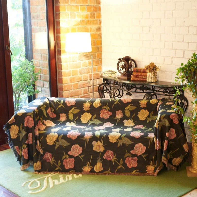 大きなサイズのマルチカバーにぴったりの大胆な構図のフラワーモチーフは、上品かつ華やかな印象。