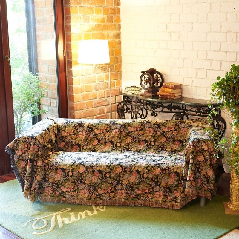 大きなサイズのマルチカバーにぴったりの大胆な構図のフラワーモチーフは、上品かつ華やかな印象。