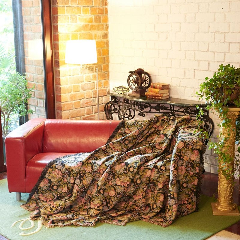 大きなサイズのマルチカバーにぴったりの大胆な構図のフラワーモチーフは、上品かつ華やかな印象。