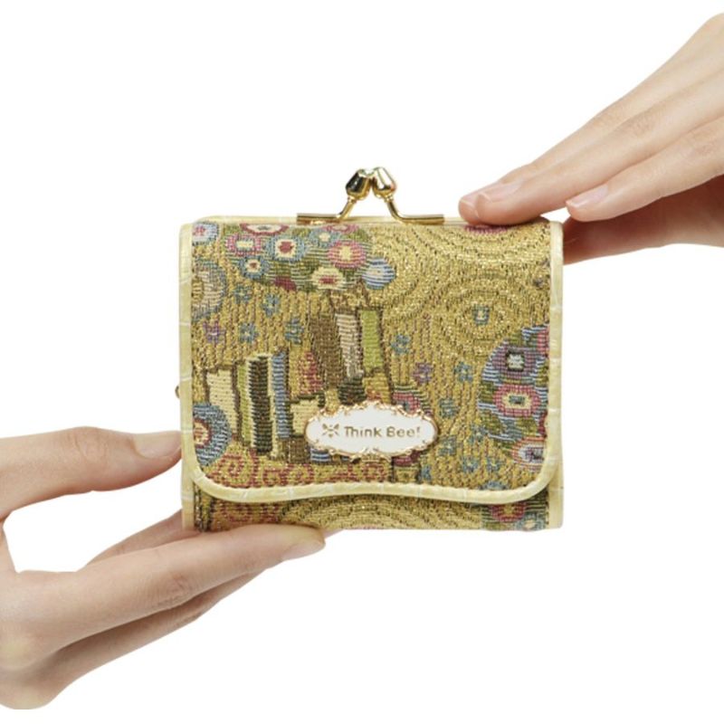 表地はイタリア製でゴールドを基調に緻密に織り上げられた幾何学模様は、19世紀末オーストリアの画家グスタフ・クリムトの絵画をもとに現代風にアレンジしたもの。