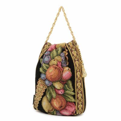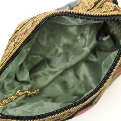 素材 | 表地原産国 | イタリア | 表地 | ビスコース68%・アクリル28%・ポリエステル2%・ナイロン2% | 裏地 | ポリエステル100% | その他 | ハンドル:メタルチェーン | | - | サイズ(約) | 本体(突起部を除く最大) | H 16 × W 12.5 × D 6.5 cm | ハンドル立ち上がり | 9cm | ショルダーストラップ長さ | -/- | 重さ | 100g | | 仕様 | 開口部 | サイドファスナー式 | 内側 | - | 外側 | - | その他 | 作品により柄の出方が異なる場合があります | 補足情報 | - | |