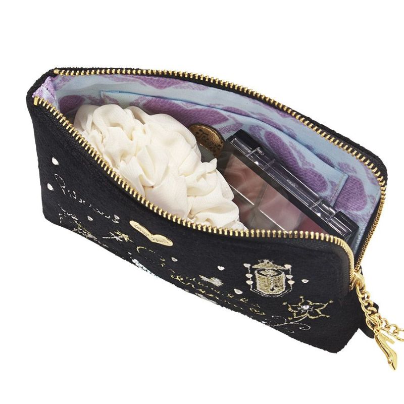 薄型のスクエアタイプで、コンパクトやリップなど化粧直しの必需品を入れておくのにちょうどよいサイズ感。