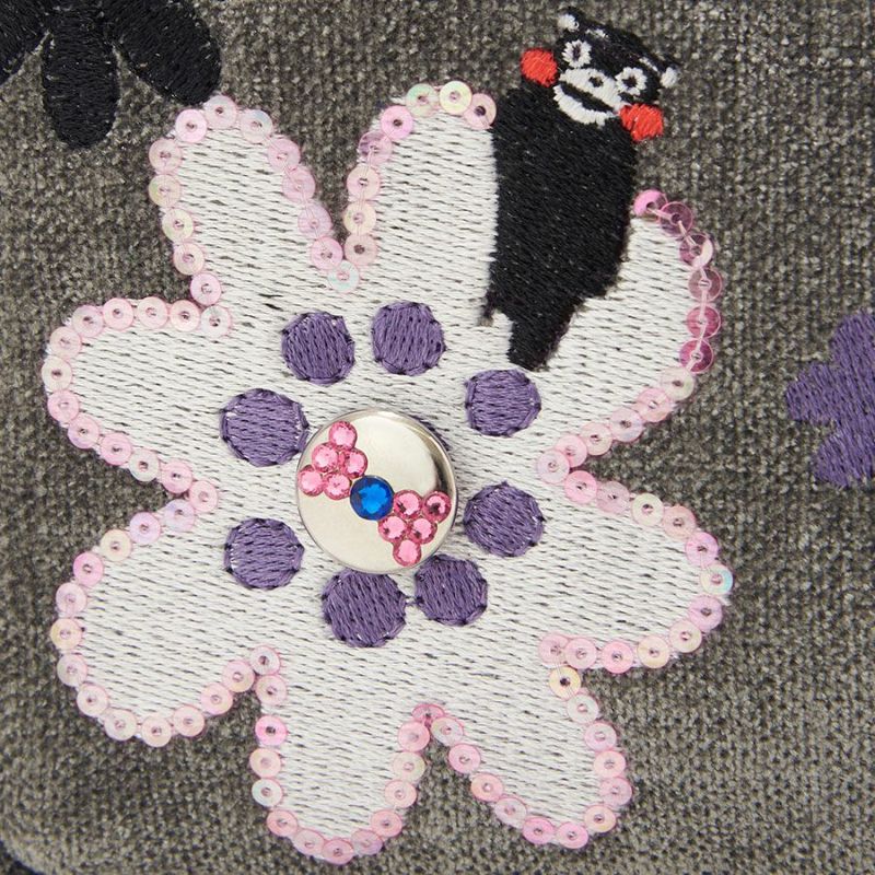 素材 | 表地原産国 | イタリア | 表地 | ポリエステル100% | 裏地 | ポリエステル100% | 付属 | - | その他 | ボタン・スパンコール・Swarovski Crystals | サイズ(約) | 本体(突起部を除く最大) | H 11.5 × W 16 × D 3.5 cm | ハンドル立ち上がり | -/- | ショルダーストラップ長さ | -/- | 重さ | 73g | | 仕様 | 開口部 | ファスナー式 | 内側 | オープンポケット×1 | 外側 | - | その他 | 作品により装飾が異なる場合があります表面片側にスパンコール刺繍、ボタンなどの装飾 | 補足情報 | くまモン許諾番号:c2010 kumamoto pref. kumamon #K33195 | |