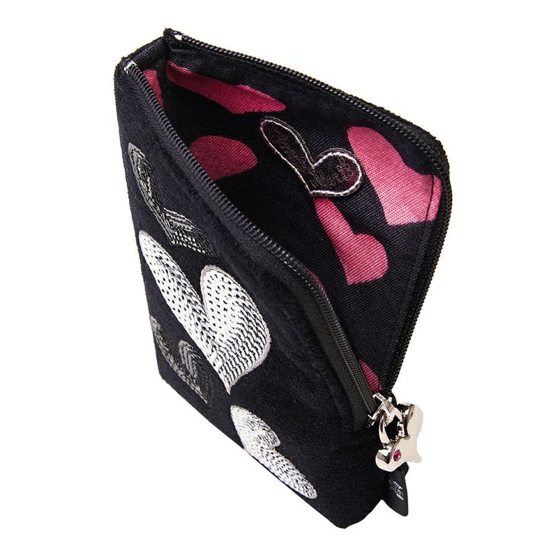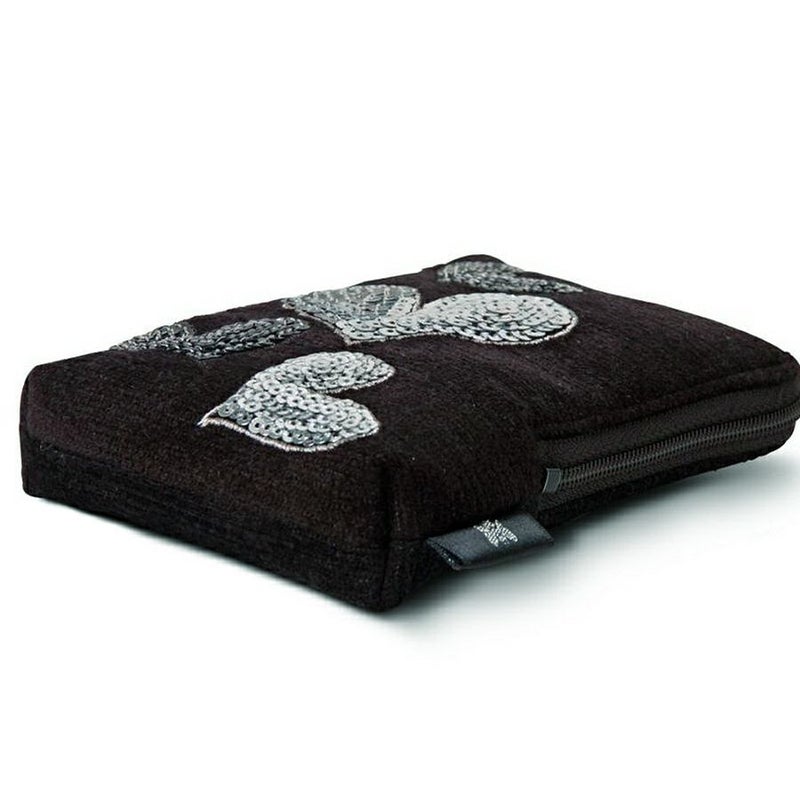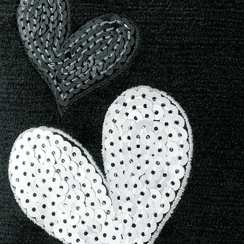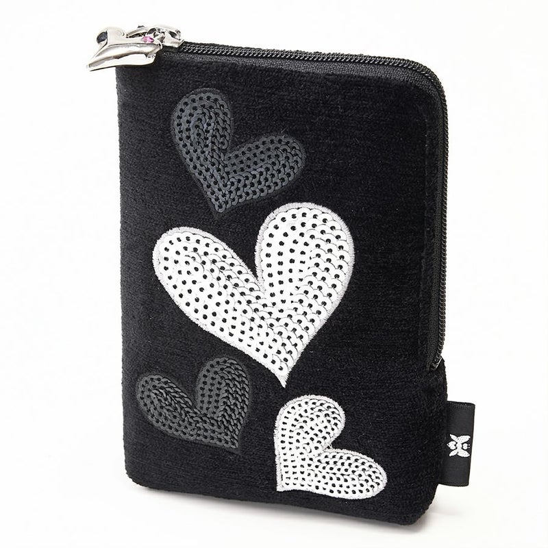 弾むようなメタリックハートがマットな漆黒に映え、動くたびにキラキラと輝きます。
