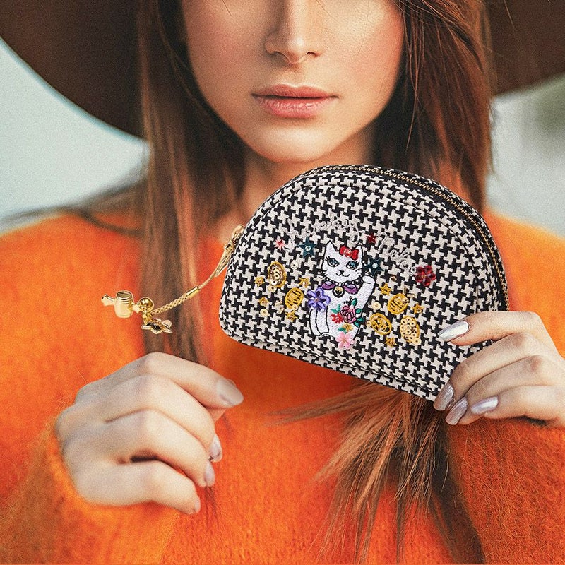 ストラップタイプなので、ポーチ以外にも、スマートフォンや財布など、お手持ちの小物に付けていただけます。