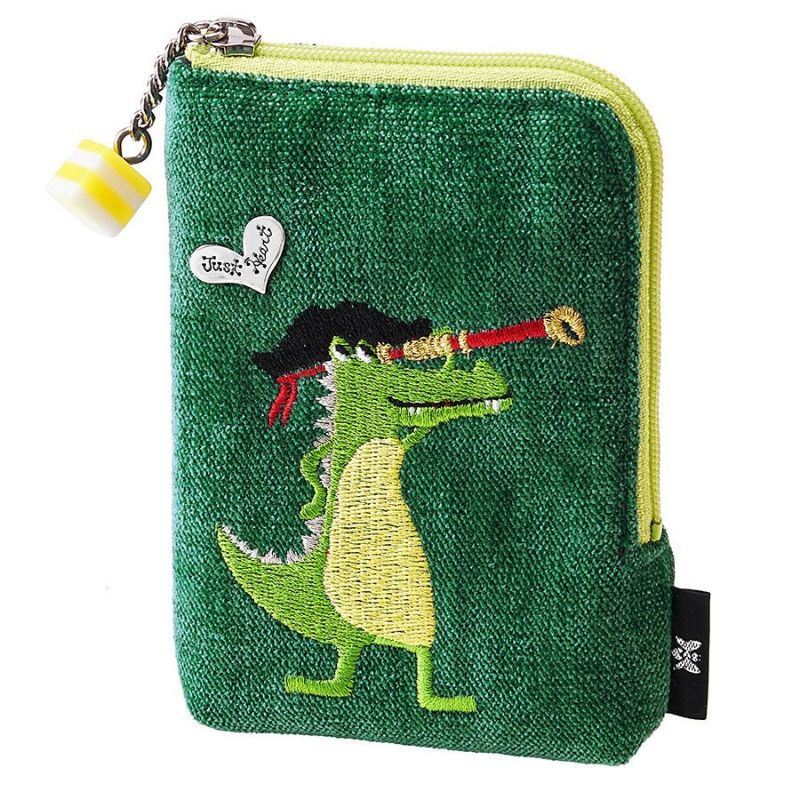 ライトグリーンのファスナーとポップなイエローのキューブ型チャームがポイントのスリムな縦長タイプです。