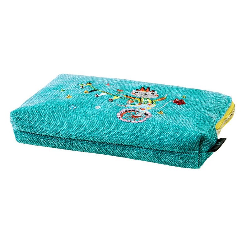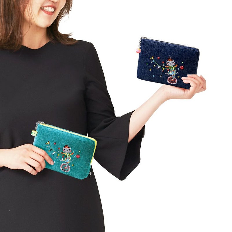 柔らかで手触りの良いイタリア製生地に、軽やかに一輪車を乗りこなす様子をミシン刺繍で表現しました。
