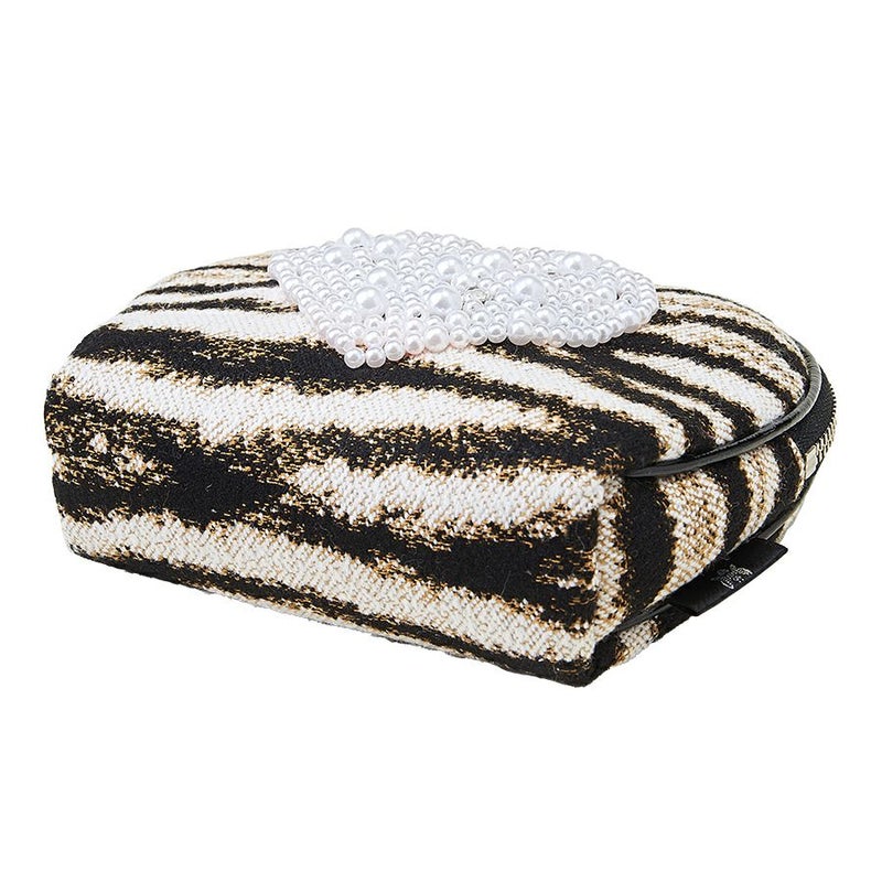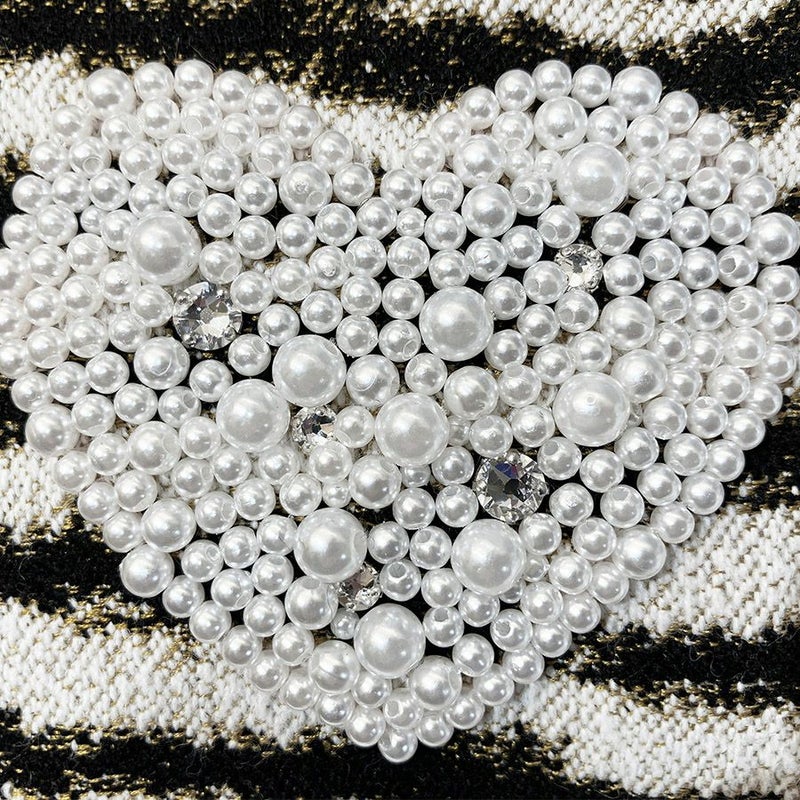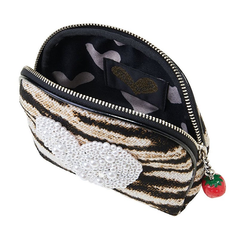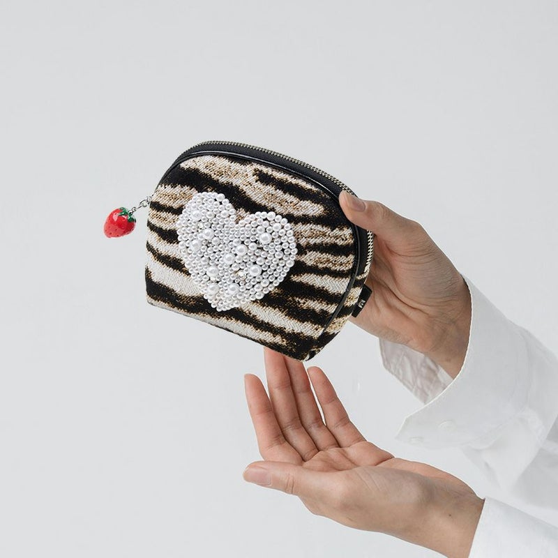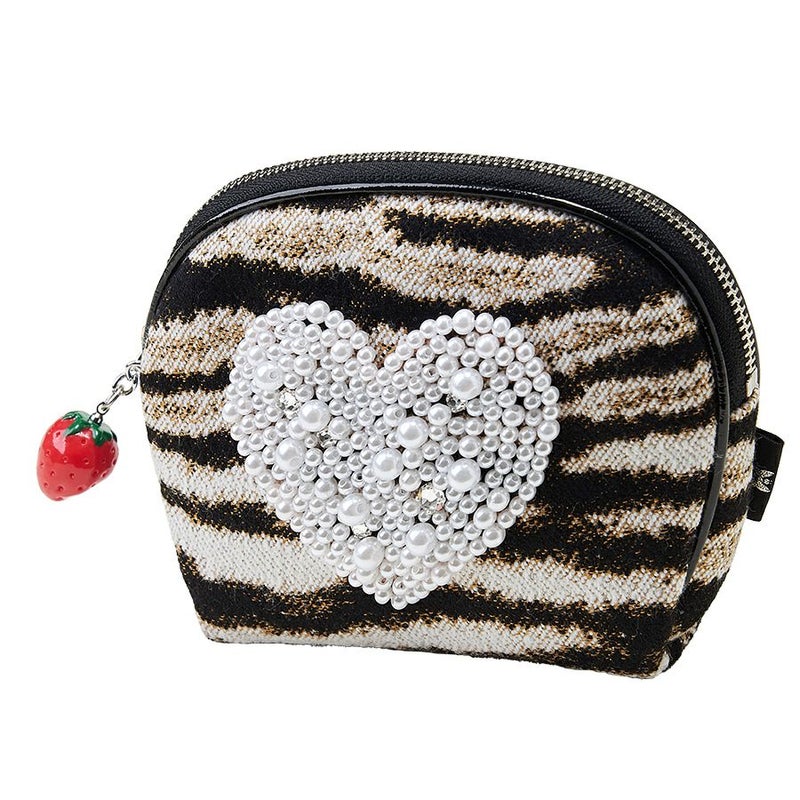 このワイルドなゼブラ柄生地に立体的なハート型の装飾と苺のチャームでキュートをプラスした甘辛MIX。