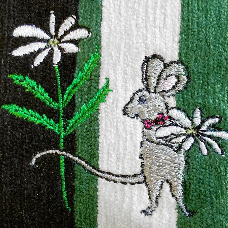背面にも可愛いネズミとお花の刺繍を施し、さらに物語のイメージが広がります。