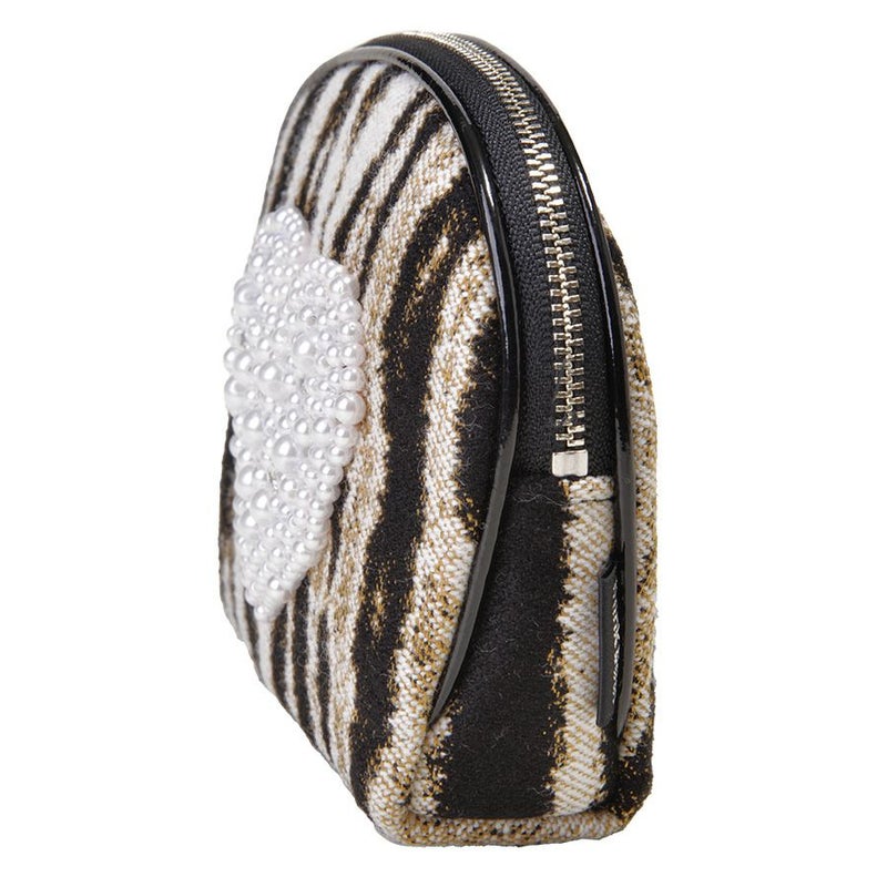 | 素材 | | 表地原産国 | イタリア | | 表地 | アクリル64%・ビスコース36% | | 裏地 | コットン100% | | 付属 | 合成皮革 | | その他 | ビーズ・クリスタルガラス | | サイズ(約) | | 本体(突起部を除く最大) | H 12 × W 14 × D 4 cm | | ハンドル立ち上がり | -/- | | ショルダーストラップ長さ | -/- | | 重さ | 70g | | | 仕様 | | 開口部 | ファスナー式 | | 内側 | - | | 外側 | - | | その他 | 作品により柄の出方が異なる場合があります | | 補足情報 | | - | |