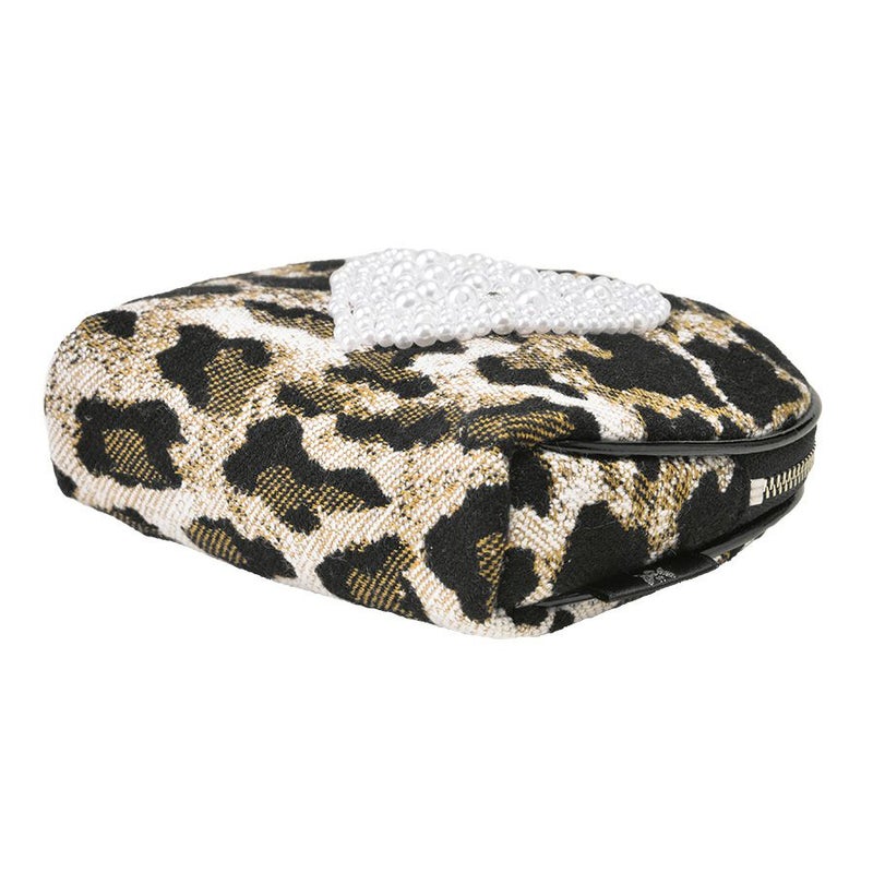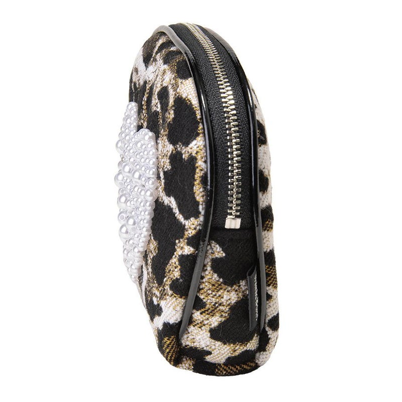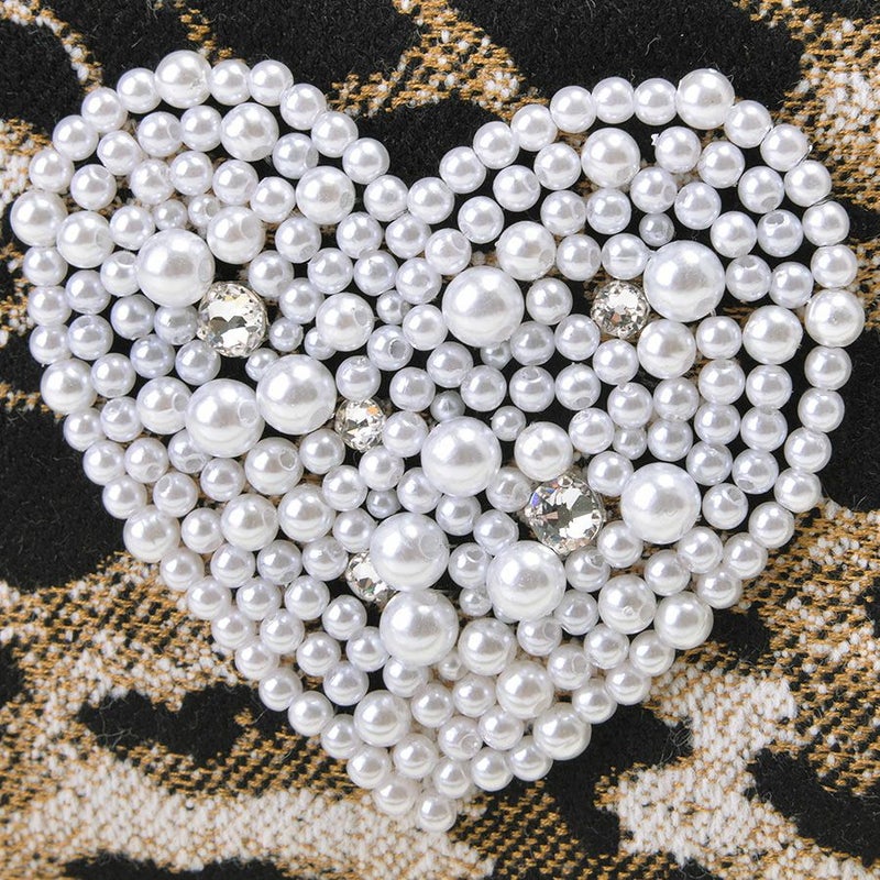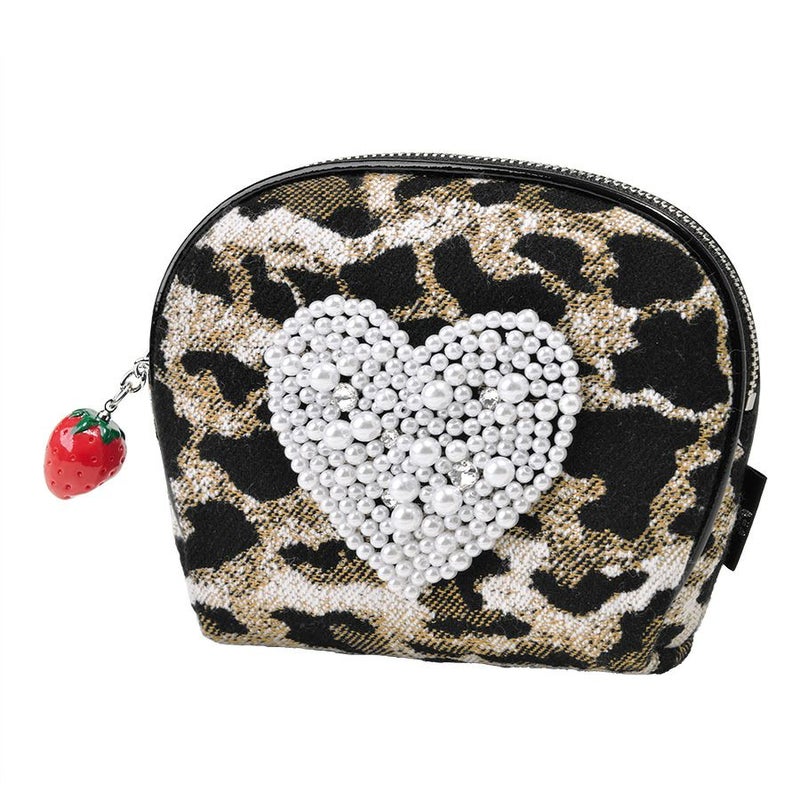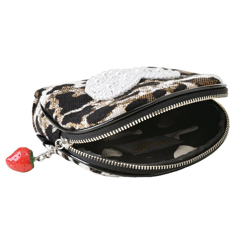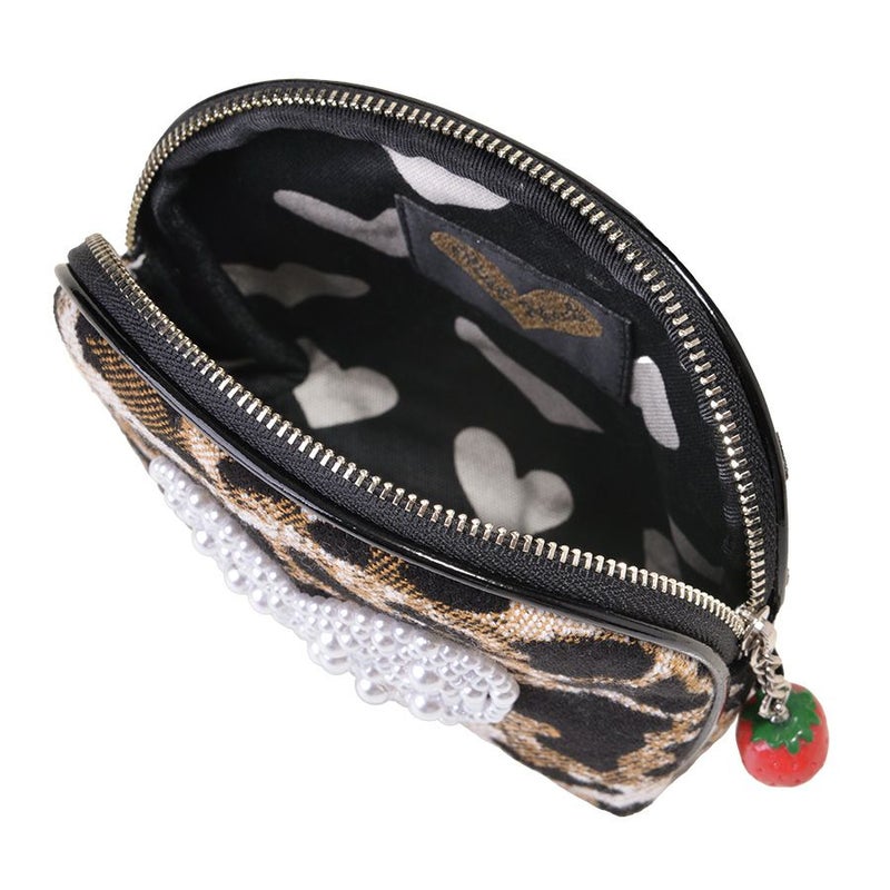 このワイルドなレオパード柄生地に立体的なハート型の装飾と苺のチャームでキュートをプラスした甘辛MIX。