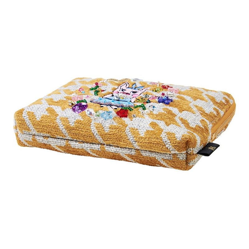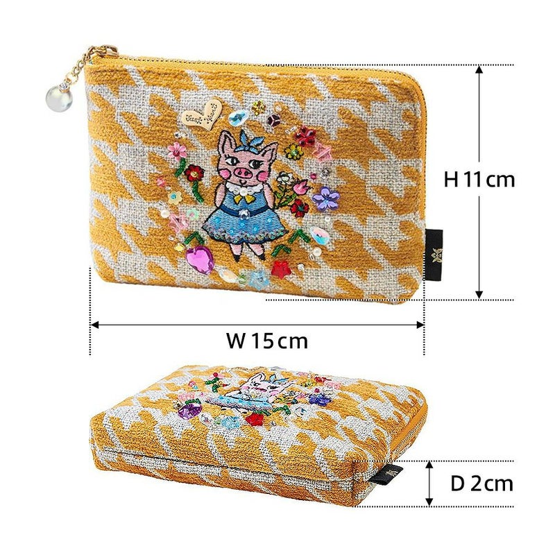 | 素材 | | 表地原産国 | トルコ | | 表地 | コットン46%・アクリル35%・ポリエステル14%・レーヨン5% | | 裏地 | コットン100% | | 付属 | - | | その他 | ビーズ・スパンコール・クリスタルガラス | | サイズ(約) | | 本体(突起部を除く最大) | H 11 × W 15 × D 2 cm | | ハンドル立ち上がり | -/- | | ショルダーストラップ長さ | -/- | | 重さ | 65g | | | 仕様 | | 開口部 | L型ファスナー式 | | 内側 | オープンポケット×1 | | 外側 | - | | その他 | 作品により柄の出方や装飾が異なる場合があります | | 補足情報 | | - | |