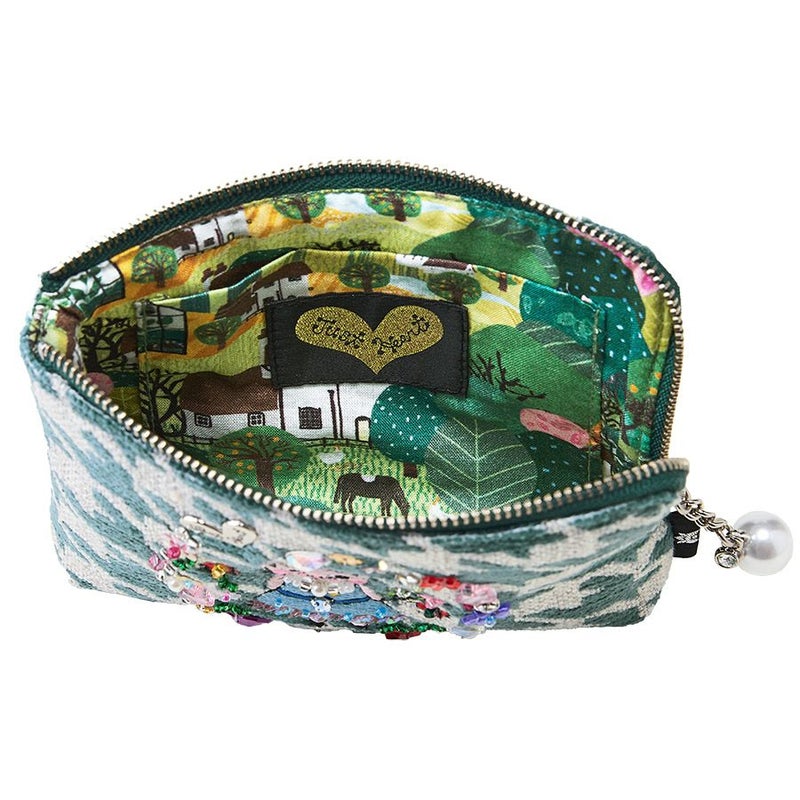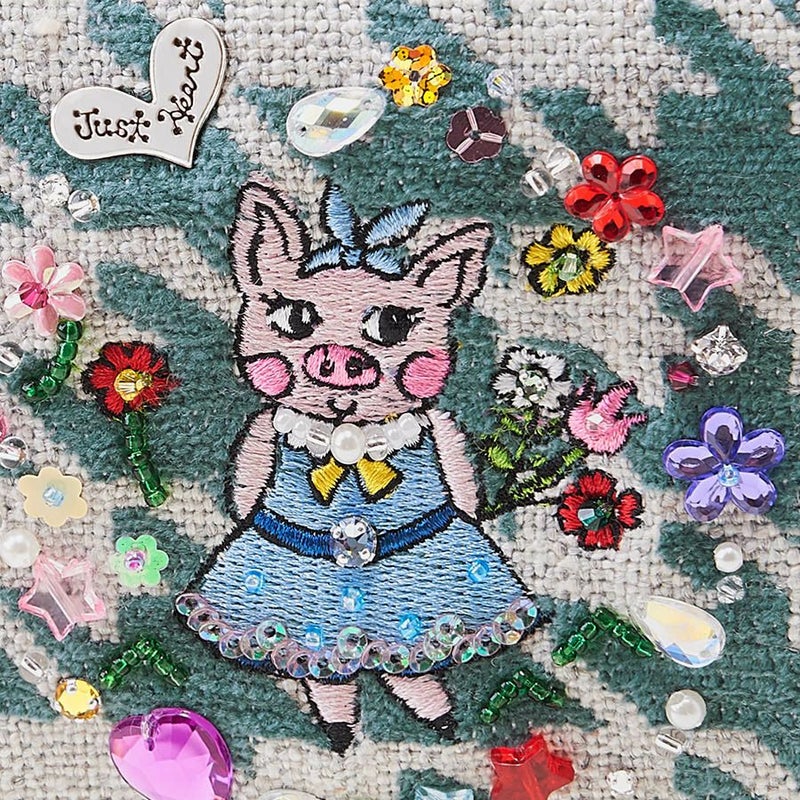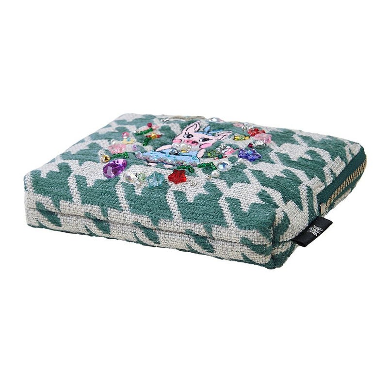 | 素材 | | 表地原産国 | トルコ | | 表地 | コットン46%・アクリル35%・ポリエステル14%・レーヨン5% | | 裏地 | コットン100% | | 付属 | - | | その他 | ビーズ・スパンコール・クリスタルガラス | | サイズ(約) | | 本体(突起部を除く最大) | H 11 × W 15 × D 2 cm | | ハンドル立ち上がり | -/- | | ショルダーストラップ長さ | -/- | | 重さ | 65g | | | 仕様 | | 開口部 | L型ファスナー式 | | 内側 | オープンポケット×1 | | 外側 | - | | その他 | 作品により柄の出方や装飾が異なる場合があります | | 補足情報 | | - | |