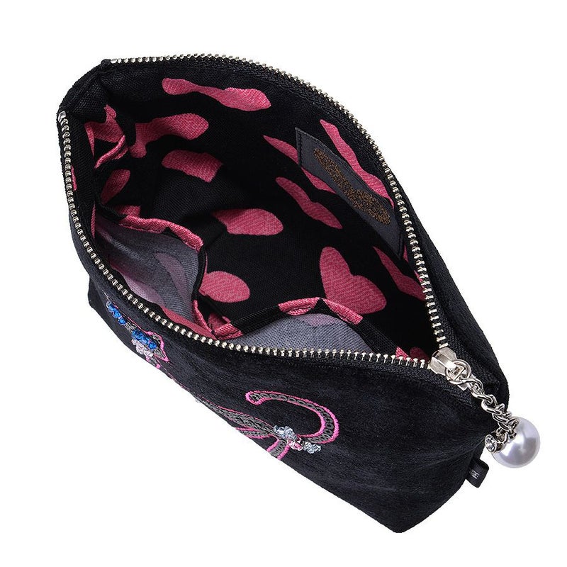 ファスナーの引手には、上品なクリスタルガラスが1粒ついた持ちやすいパールチャームを採用。