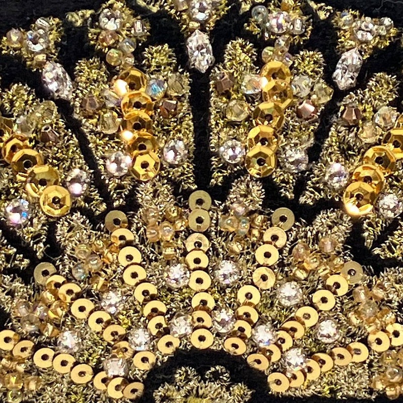 | 素材 | | 表地原産国 | トルコ | | 表地 | ビスコース55%・ポリエステル35%・コットン10% | | 裏地 | ポリエステル100% | | 内側/付属 | - | | その他 | 前面:ビーズ・スパンコール・クリスタルガラス 底面:牛革 | | サイズ(約) | | 本体(突起部を除く最大) | H 7.5 × W 15 × D 5 cm | | ハンドル立ち上がり | -/- | | ショルダーストラップ長さ | -/- | | 重さ | 90g | | | 仕様 | | 開口部 | 口金式 | | 内側 | - | | 外側 | - | | その他 | 作品により柄の出方や装飾が異なる場合があります 表面片側にビーズ、スパンコール刺繍 | | 補足情報 | | - | |