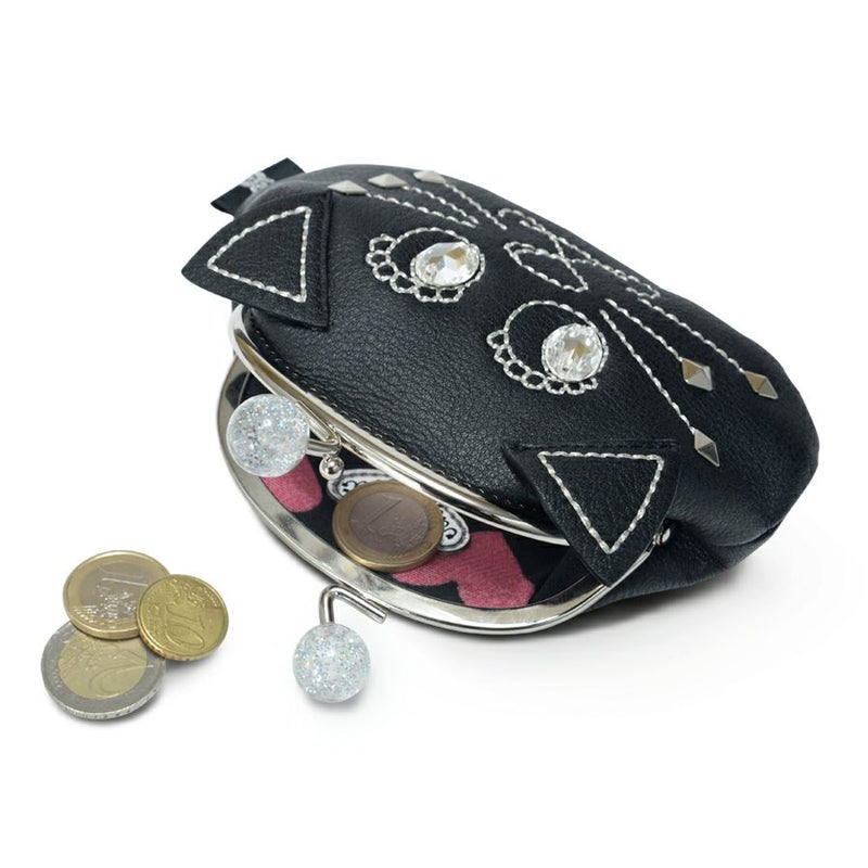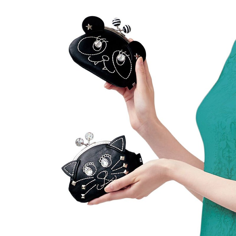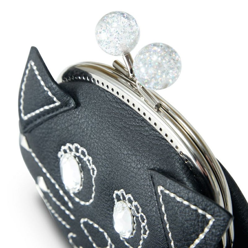 本体が猫の顔になった、たまらなく可愛い口金ポーチ。愛嬌のある表情で、持っているだけで楽しい気分にしてくれます。