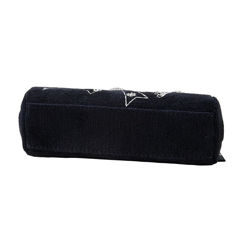 なめらかな手触りと深みのある黒が印象的なトルコ製の織生地に、楽しげに踊るようなリボンやハートの甘いモチーフをシルバーの刺繍でシックに表現。