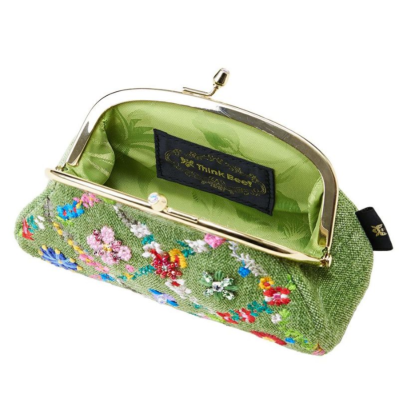 仕切りやポケットが無いシンプルなつくりで、大きく開く口金は出し入れもスムーズ。