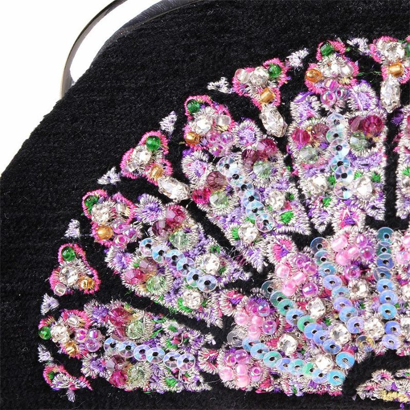素材 | 表地原産国 | トルコ | 表地 | ビスコース55%・ポリエステル35%・コットン10% | 裏地 | ポリエステル100% | 内側/付属 | - | その他 | ビーズ・スパンコール・クリスタルガラス | サイズ(約) | 本体(突起部を除く最大) | H 7.5 × W 15 × D 5 cm | ハンドル立ち上がり | -/- | ショルダーストラップ長さ | -/- | 重さ | 90g | | 仕様 | 開口部 | 口金式 | 内側 | - | 外側 | - | その他 | 作品により柄の出方や装飾が異なる場合があります 表面片側にビーズ、スパンコール刺繍 | 補足情報 | - | |