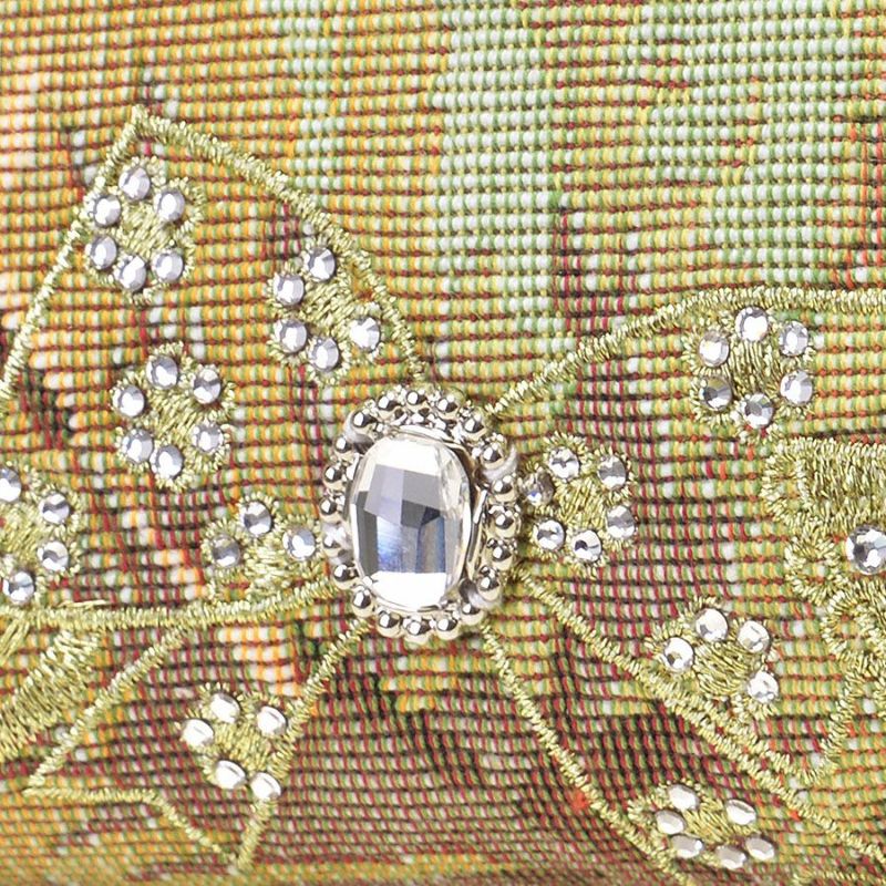 素材 | 表地原産国 | イタリア | 表地 | コットン87%・ポリエステル13% | 裏地 | ポリエステル100% | 内側/付属 | - | その他 | クリスタルガラス | サイズ(約) | 本体(突起部を除く最大) | H 7.5 × W 15 × D 5 cm | ハンドル立ち上がり | -/- | ショルダーストラップ長さ | -/- | 重さ | 85g | | 仕様 | 開口部 | 口金式 | 内側 | - | 外側 | - | その他 | 作品により柄の出方や装飾が異なる場合があります 表面片側に