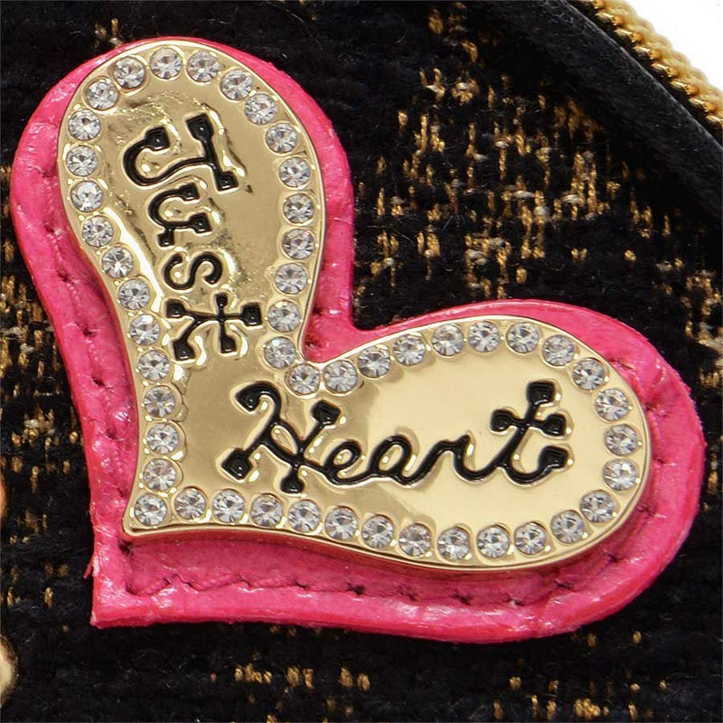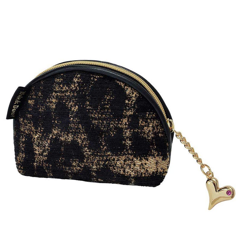 レオパード柄のレザーハートには、クリスタルガラスで飾ったボタンと星形スタッズがキラリ。