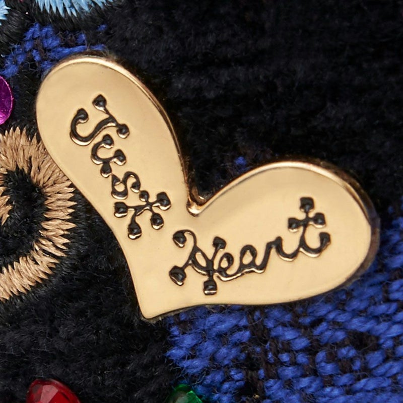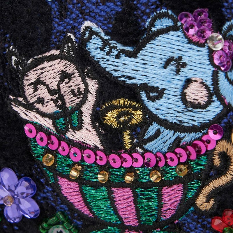 光沢のあるブルー×ブラックのイタリア製レオパード柄のジャカード織生地を使用しているので、可愛いキャラクターの刺繍でありながら、子供っぽくなりすぎないのがポイント。