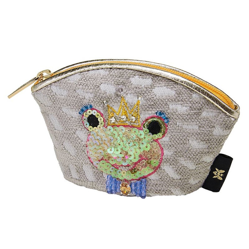 柔らかくマットな質感が、光沢のあるスパンコールのカエルを引き立てています。