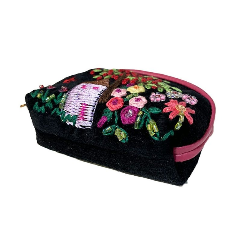 職人が一針一針丁寧に刺繍した、暖かみのあるハンドステッチにビーズやスパンコールが映え、童話の一場面のような雰囲気に。