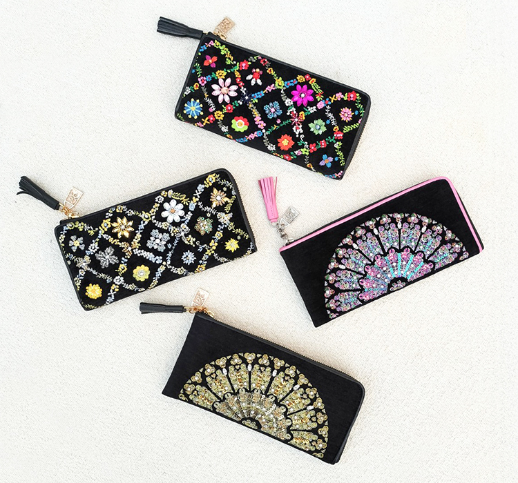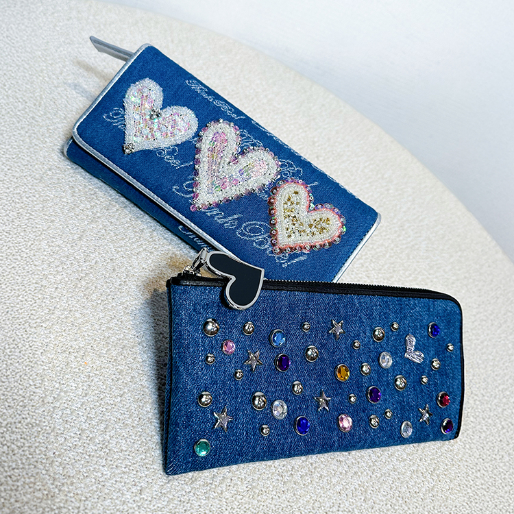 ポップなカラーのラインストーンが個性的な薄型ウォレットです。