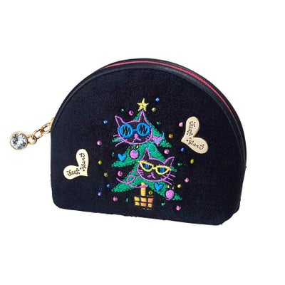 ランナウェイキャッツキーケース愛用してます。お揃いでミニポーチ欲しくなり購入!Xmasツリーと共にネコちゃんカワイイ❣️