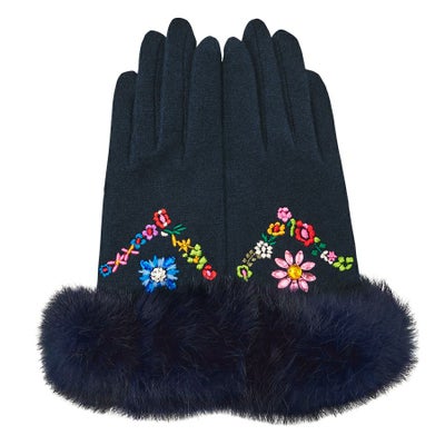 ファーがふわふわしていて、とても肌触りがいいです。指の部分も、丁寧な縫製で安心して使えます。装飾を施した部分は、履く時に取れやしないかと気を使います。
